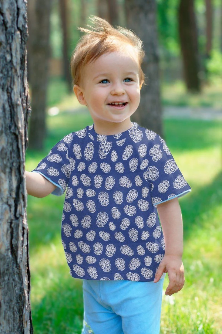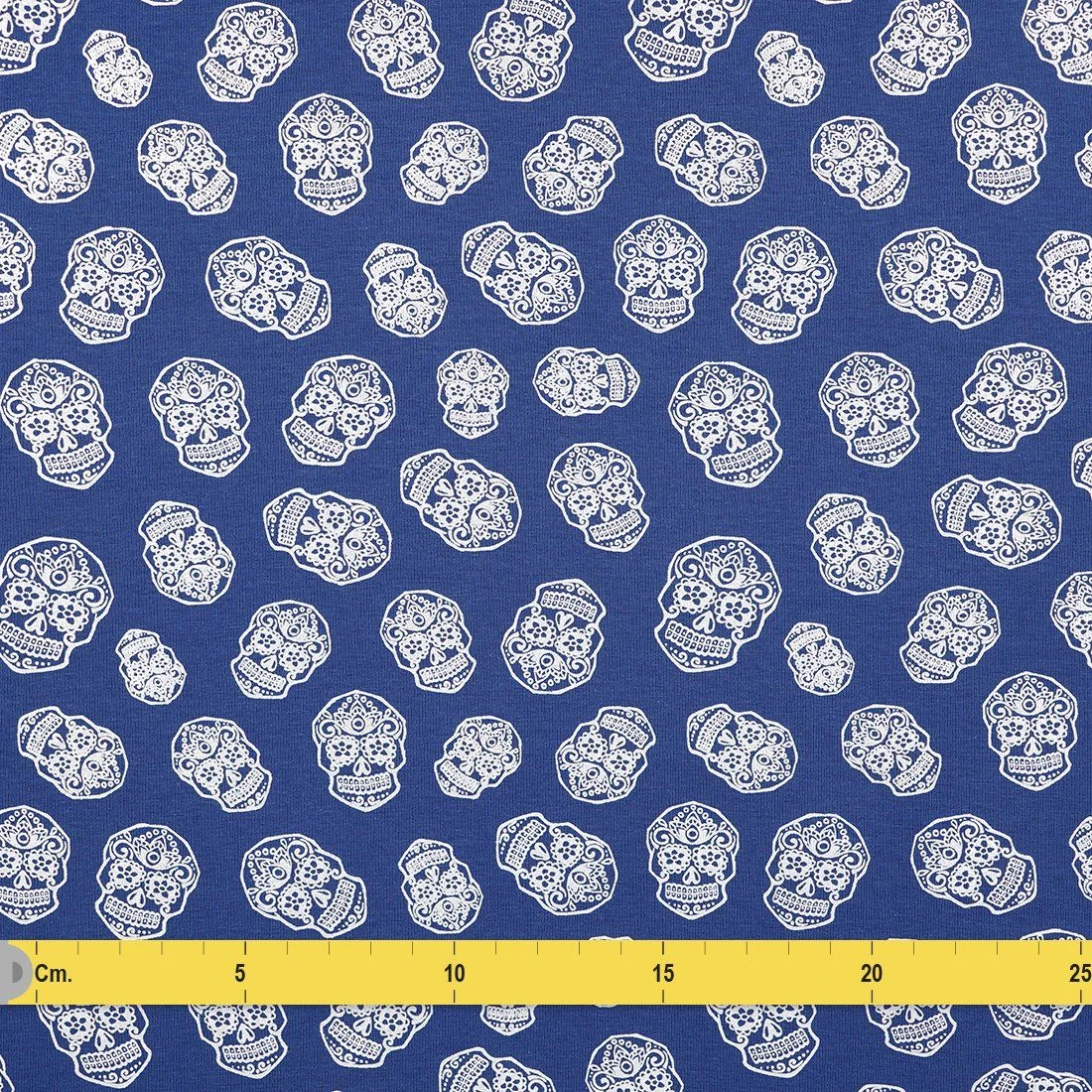 Werden Sie schwach bei diesem Jersey aus 100% Baumwolle in Blau mit einem silbernen mexikanischen Kopfdruck.
