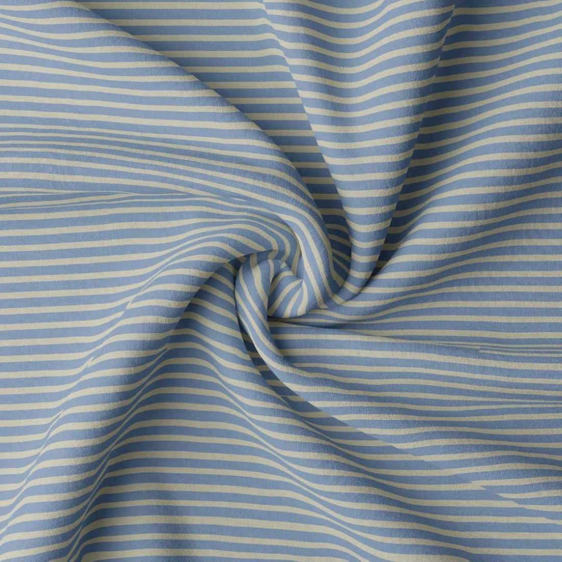 Mit seinen 5mm breiten Streifen in Blau und Beige wird dieser Stoff Ihren Kreationen eine frische und originelle Note verleihen. Zögern Sie nicht, mit den Mustern zu spielen, um einzigartige und modische Stücke zu kreieren.