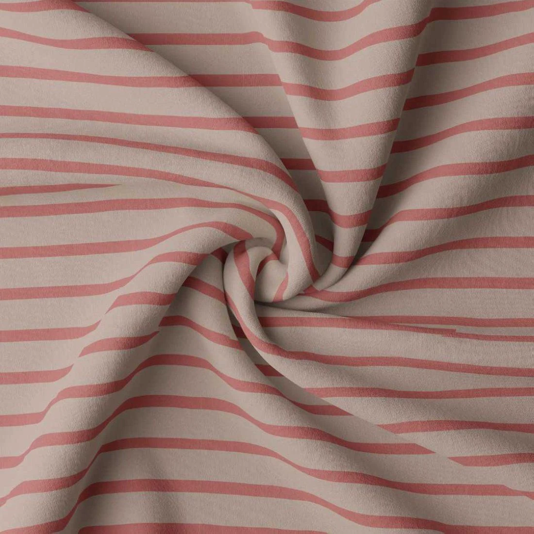 Wir freuen uns, Ihnen unseren neuen Jersey-Strickstoff mit Paprika- und Taupe-Streifenmuster vorzustellen. Dieser Stoff ist zertifiziert und besteht zu 96% aus Baumwolle und zu 4% aus Elasthan, was ihn sowohl weich als auch dehnbar für optimalen Komfort macht.