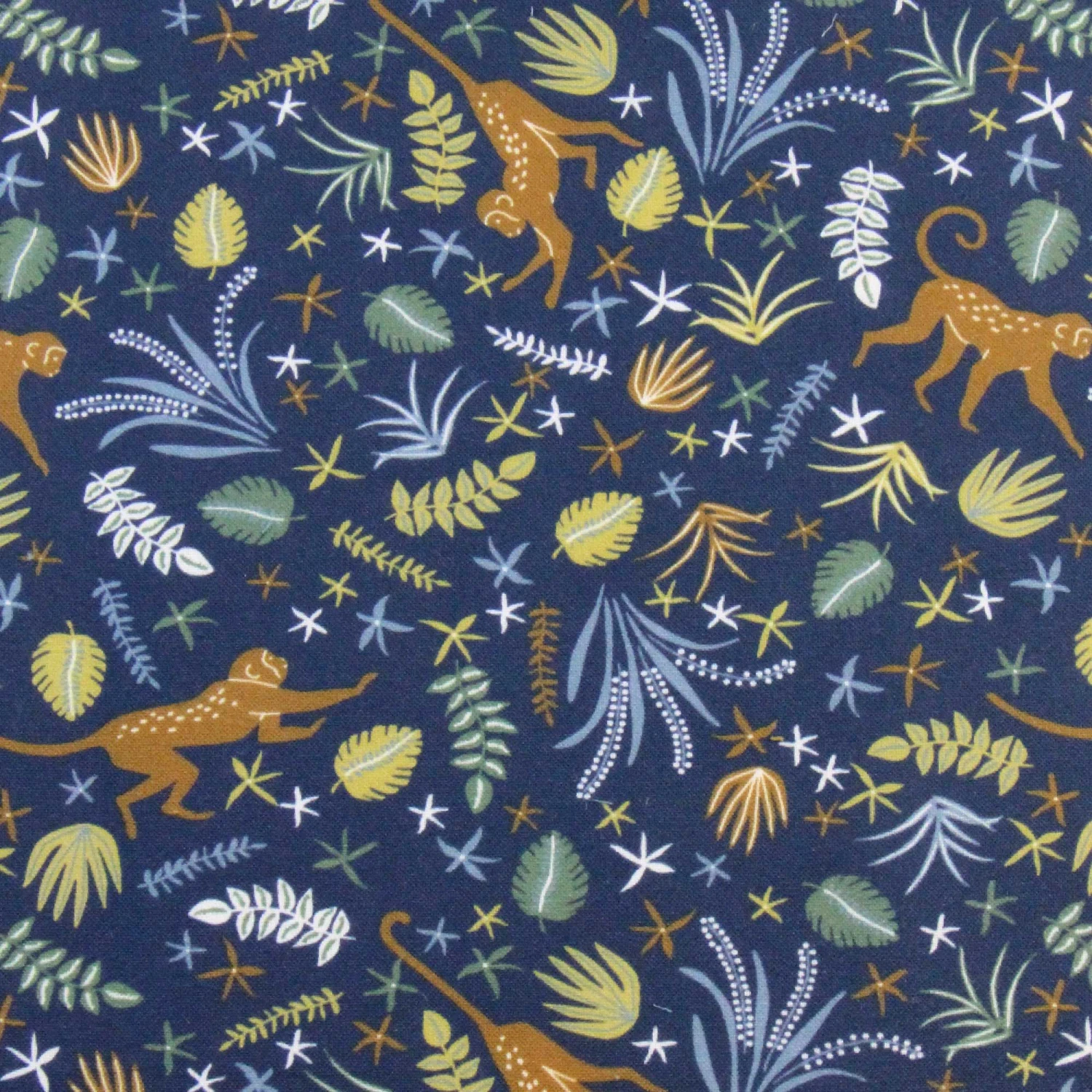 Das Baumwoll-Jersey mit Elasthan in Marine mit lustigen Affen im Dschungel ist ein schwerer und zertifizierter Stoff, der Liebhaber von originellen und verspielten Mustern begeistern wird. Die Zusammensetzung aus 94% Baumwolle und 6% Elasthan bietet unvergleichlichen Komfort und Flexibilität. Mit einer Breite von 150 cm eignet sich dieser Stoff ideal für die Herstellung von Kleidern, T-Shirts, Sportbekleidung oder kreativen Oberteilen. Seine Marinefarbe ist zeitlos und lässt sich leicht mit anderen Farben kombinieren. Wir lieben die lustigen Affen, die auf diesem Stoff spielen und jedem Ihrer Kreationen eine originelle Note verleihen werden.