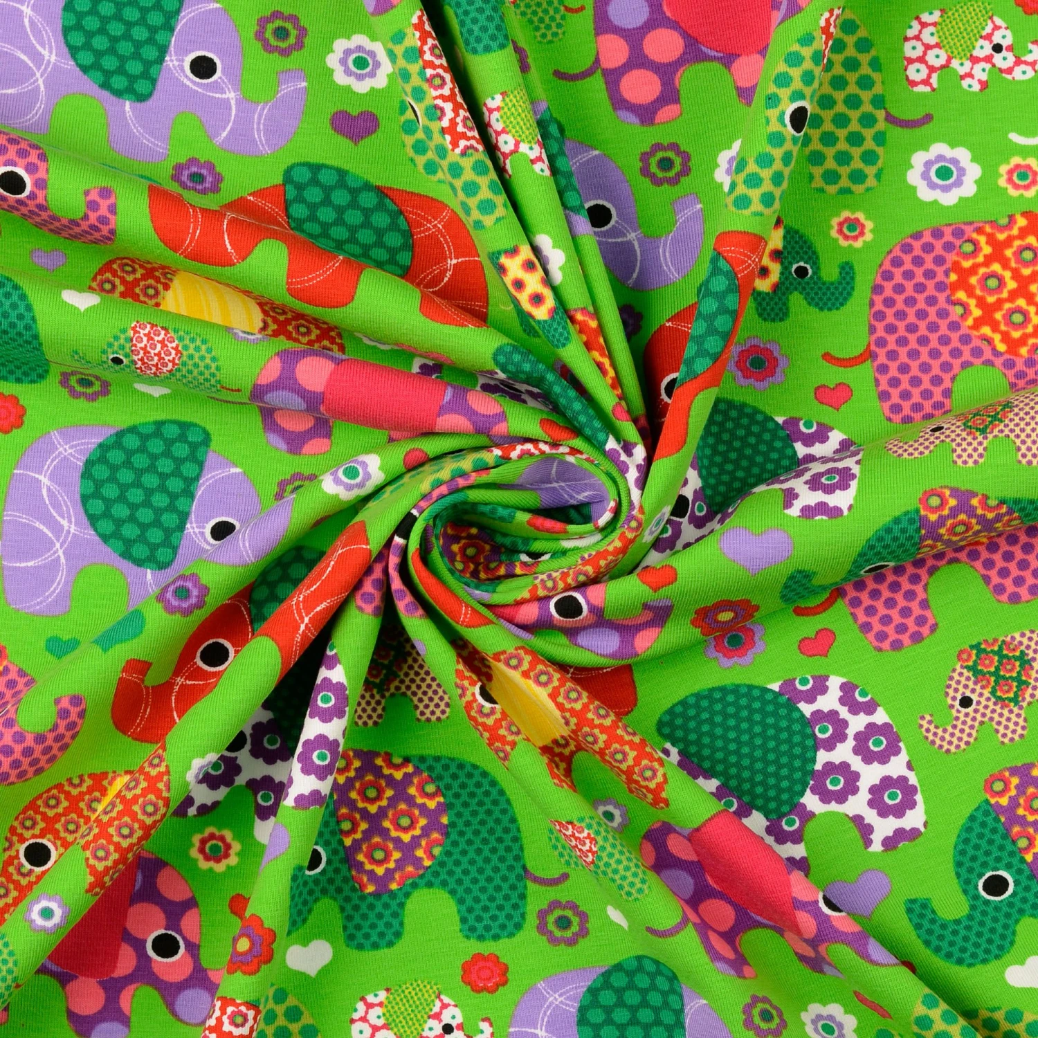 Unser Jersey-Stoff aus Baumwollstrick mit Elefantenmotiv in grünem Rasen ist in den Kategorien Baumwolle, Jersey, zertifizierter Stoff, Bekleidungsstoff, Kindermodestoff, Neuheiten Stoffe und Neuheiten Kinderstoffe erhältlich. Ob für ein persönliches oder professionelles Projekt, dieser Stoff ist eine ausgezeichnete Wahl für Ihr nächstes Nähprojekt. Bestellen Sie jetzt und lassen Sie Ihrer Kreativität freien Lauf!