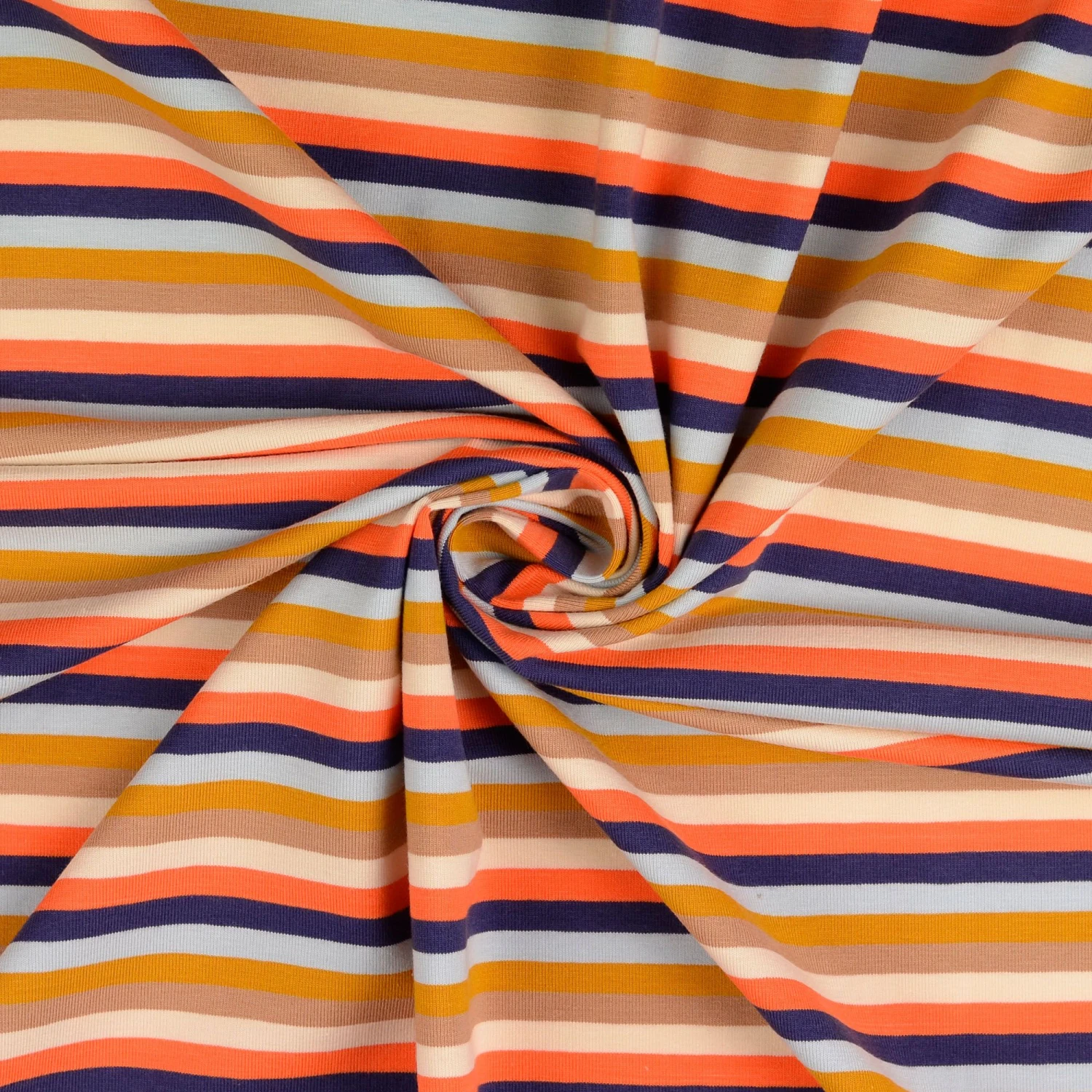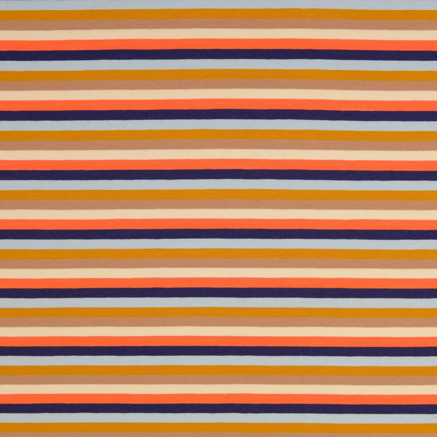 Unser gestreifter mehrfarbiger braun-oranger Baumwolljersey für Kinder verfügt auch über zertifizierte technische Eigenschaften, was seine Qualität und Langlebigkeit garantiert. Er gehört zur Kategorie Baumwollprodukte, Jersey, zertifizierte Stoffe, Bekleidungsstoffe, Kindermodestoffe und Neuheiten für Kinderstoffe.