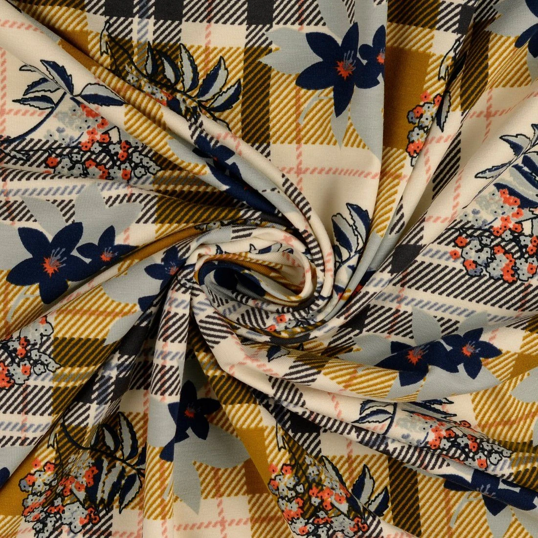 Dieses karierte Baumwolljersey mit Blumenmuster ist einfach unwiderstehlich! Die Kombination aus klassischen und floralen Mustern schafft eine einzigartige visuelle Wirkung, die alle Blicke auf sich zieht. Mit seinem schweren Gewicht ist dieser Stoff perfekt für T-Shirt- und Sportbekleidungsprojekte geeignet. Die Zusammensetzung besteht zu 95% aus Baumwolle und zu 5% aus Elasthan, was eine hohe Strapazierfähigkeit und optimalen Komfort gewährleistet. Dieser Stoff ist auch für Bekleidungszwecke zertifiziert und zeichnet sich durch seine technischen Eigenschaften aus. Mit all diesen Merkmalen ist dieser Baumwolljersey ein Muss für alle Modefans und Kleidungshersteller. Entdecken Sie jetzt dieses neue Gewebe in der Produktkategorie „Baumwolle, Jersey, Zertifizierter Stoff, Bekleidungsstoff, Neue Stoffe“.