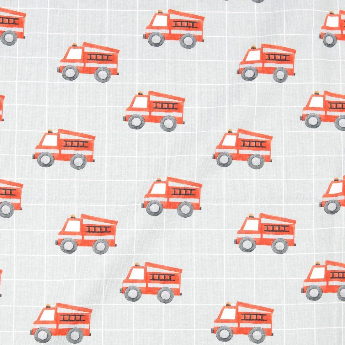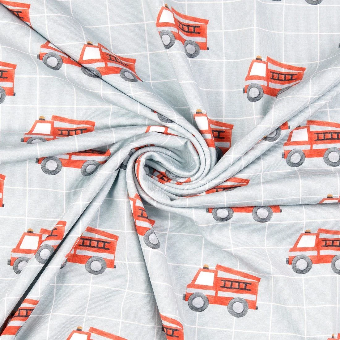 Mit seinem Feuerwehr-LKW-Muster auf einem grauen Karo-Hintergrund wird dieser Stoff sicherlich Ihre kleinen Abenteurer begeistern. Lassen Sie Ihrer Kreativität freien Lauf und fertigen Sie einzigartige und originelle Kleidungsstücke mit unserem grauen Karo-Feuerwehr-LKW-Digital-Jersey-Stoff.