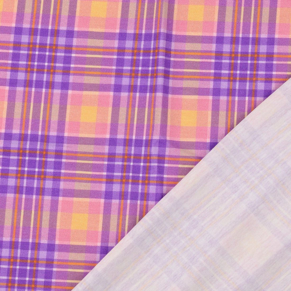Wir sind absolut begeistert von diesem digital gedruckten lila karierten Jersey-Stretchstoff. Mit seinem schweren Gewicht und seiner Zusammensetzung aus 95% Baumwolle und 5% Elasthan ist er die perfekte Wahl für die Herstellung von T-Shirts und Sportbekleidung. Dieser Stoff ist zertifiziert für seine technischen Eigenschaften und ein absolutes Muss für Liebhaber von hochwertigen Bekleidungsstoffen. Dieses neue Stoffhighlight ist eine eigenständige Produktkategorie, die Komfort und Stil mit ihrem einzigartigen lila karierten Druck vereint. Stellen Sie sich ein T-Shirt mit kurzen Ärmeln oder eine Leggings für einen sportlichen und trendigen Look vor. Dieser Stoff ist einfach perfekt für all Ihre Kleidungskreationen.
