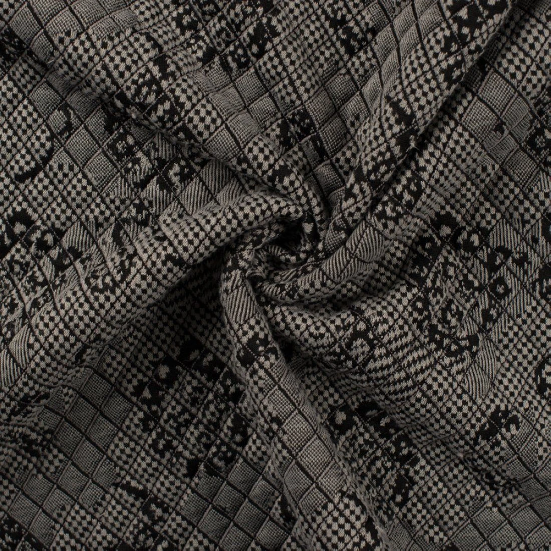 Hübscher Jersey-Jacquard in Steppoptik mit einem zeitlosen, geometrischen Muster. Der Stoff ist ideal zum Nähen eines T-Shirt, Top, Kleid, Rock…