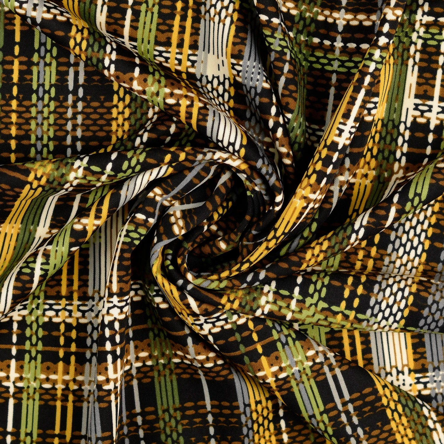 Wir freuen uns, Ihnen unseren gestreiften Punktjersey in Braun und Grün vorstellen zu können. Dieser Stoff eignet sich perfekt für Sportbekleidung wie T-Shirts. Mit seiner Zusammensetzung aus 96% Baumwolle und 4% Elasthan ist er sowohl weich als auch dehnbar. Der Stoff ist schwer, was ihn ideal für Winterkleidung macht. Wir sind sicher, dass Ihnen das gestreifte Punkt-Design in Braun und Grün gefallen wird, das Ihrem Outfit einen Hauch von Charakter verleiht. Mit unserem gestreiften Punktjersey in Braun und Grün können Sie bequeme und elegante Kleidung für jeden Anlass kreieren.