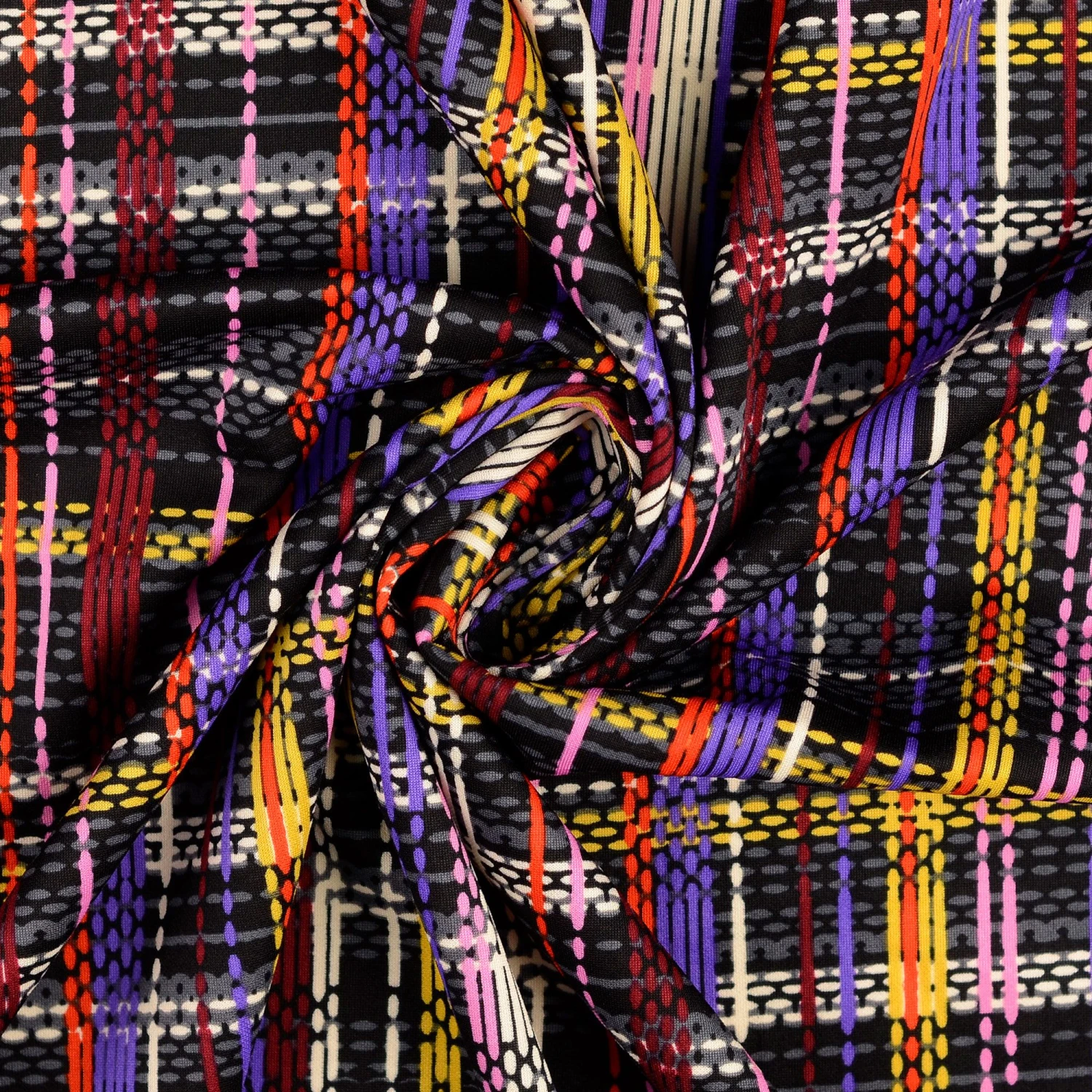 Unser mehrfarbiger gestreifter Punktjersey aus Scuba-Stretch ist eine Neuheit in unserer Stoffkollektion. Warum also nicht Ihrer Garderobe mit dieser einzigartigen Wahl einen Hauch von Farbe und Stil verleihen? Bestellen Sie jetzt!