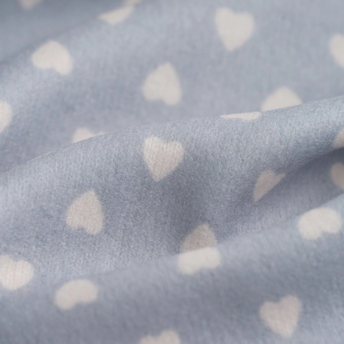 Das Herzdruckmuster auf blauem Hintergrund verleiht unseren Kreationen eine gewisse Sanftheit.