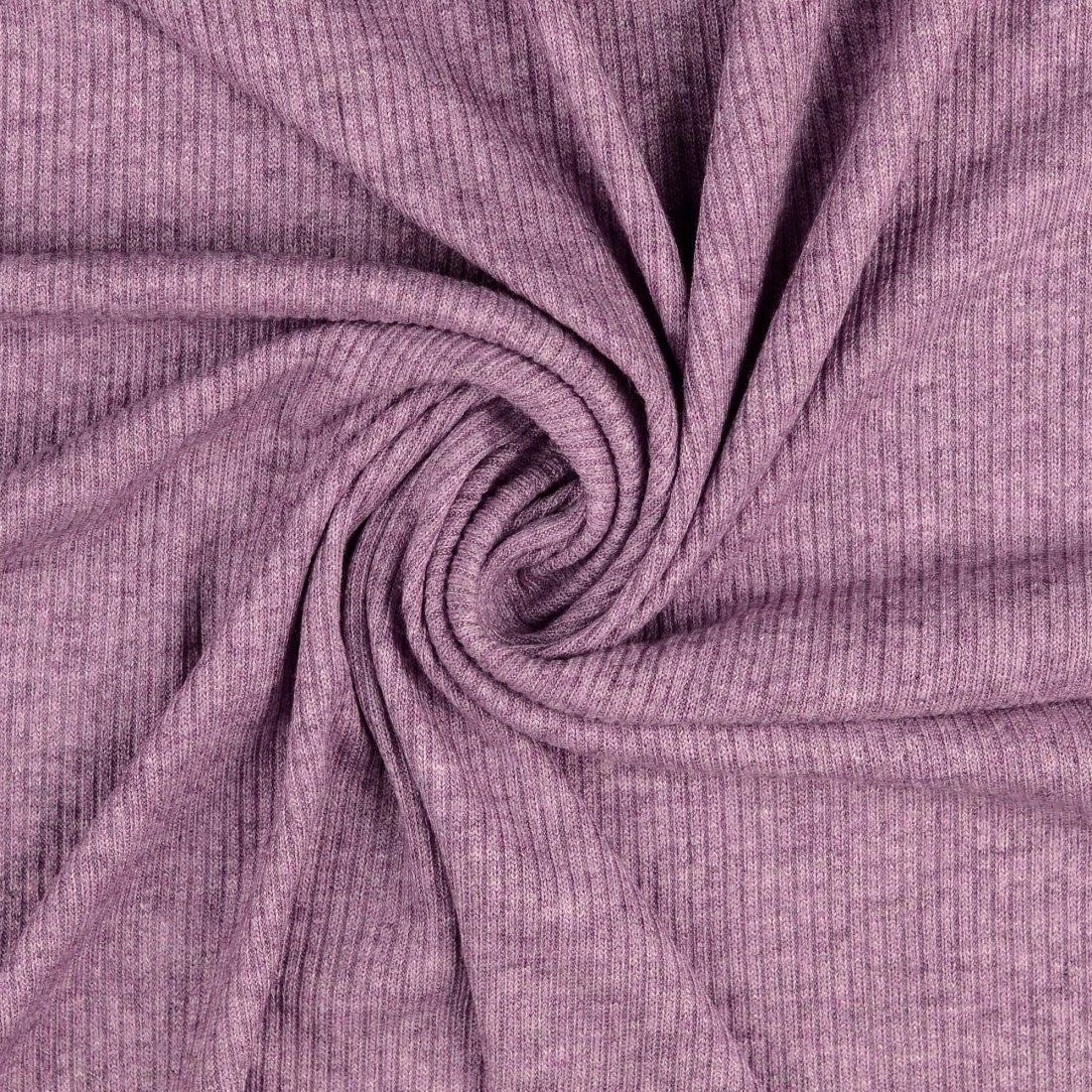 Die dunkelviolette Farbe dieses Stoffes ist perfekt, um jedem Outfit eine Hauch von Raffinesse zu verleihen. Die feine Maschenstruktur und die zarten Rippen verleihen ihm eine subtile Textur und visuelles Interesse.
