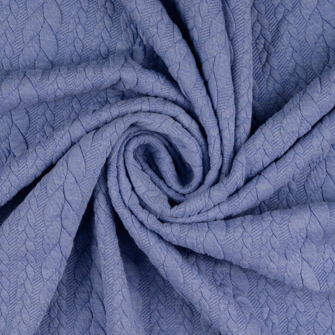 Wir sind von diesem blauen, texturierten Jerseystrick mit geflochtenem Effekt begeistert. Dieser Stoff eignet sich perfekt für T-Shirts und Sportbekleidung. Mit seiner Zusammensetzung aus 81% Polyester, 16% Viskose und 3% Elasthan ist er sowohl weich als auch bequem. Das Gewicht des Stoffes ist sehr schwer, was ihn ideal für Winterkleidung macht. Dieser Stoff ist perfekt, um bequeme und trendige Outfits zu kreieren. Das tiefblaue, texturierte Jerseystrick lässt sich leicht mit anderen Farben kombinieren. Wir stellen uns bereits ein lässiges Wochenendoutfit mit einem langärmeligen T-Shirt und einer Jogginghose vor. Dieser blaue, texturierte Jerseystrick mit geflochtenem Effekt ist ein Must-have für jeden Modebegeisterten Kleiderschrank.