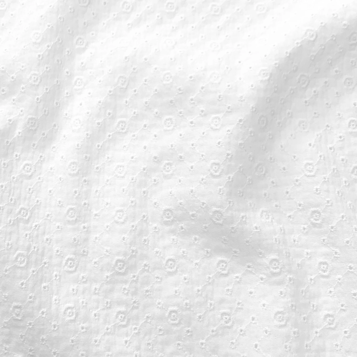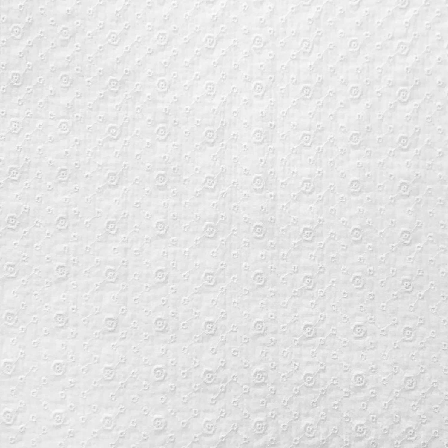 Zusammenfassend ist der Stoff Double Gaze mit geblümter geometrischer Stickerei in Weiß eine vielseitige Wahl für Modedesigner, die einen bequemen, strapazierfähigen und eleganten Stoff für ihre Kreationen suchen.