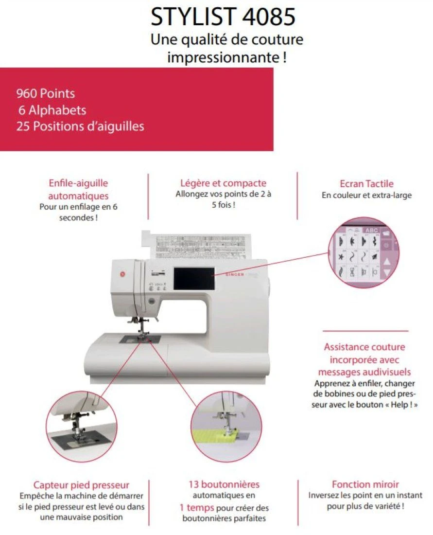 – Über 960 Nähprogramme (10 Basics, 21 Stretch, 212 Deko)