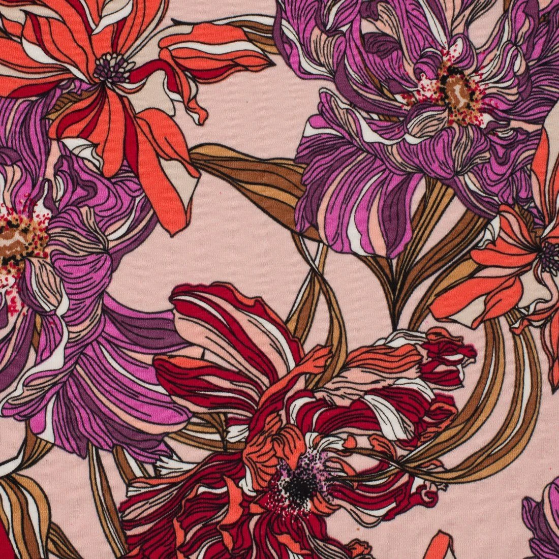Lassen Sie Ihrer Kreativität freien Lauf und stellen Sie sich mit unserem bedruckten Jersey-Viskosestrick in zartem Rosa und kleinen farbenfrohen Blumendetails die trendigsten Kleidungsstücke vor. Die schöne rosa Farbe und der Hauch von bunten Blumen verleihen Ihrer Garderobe eine frische Note.