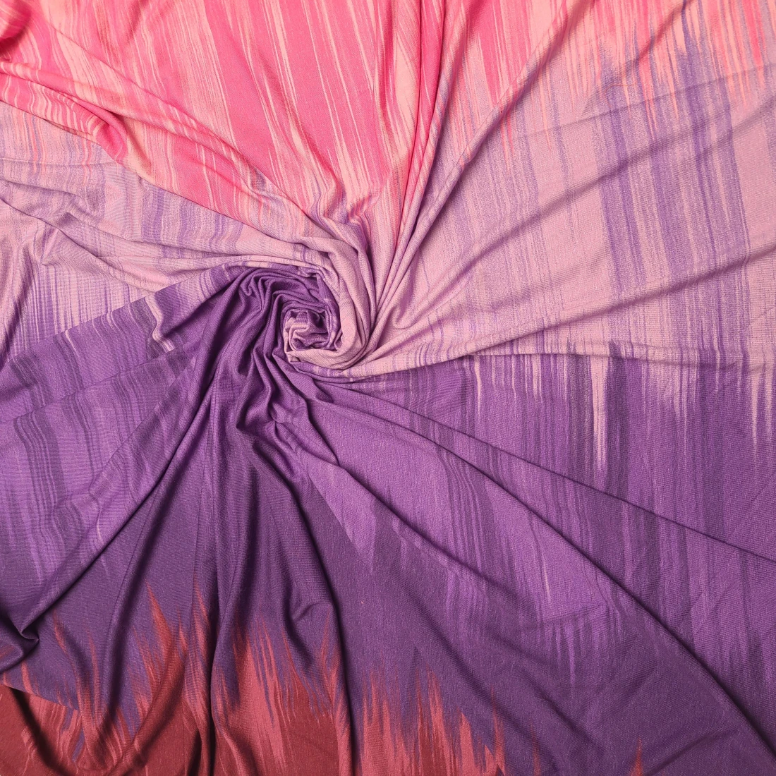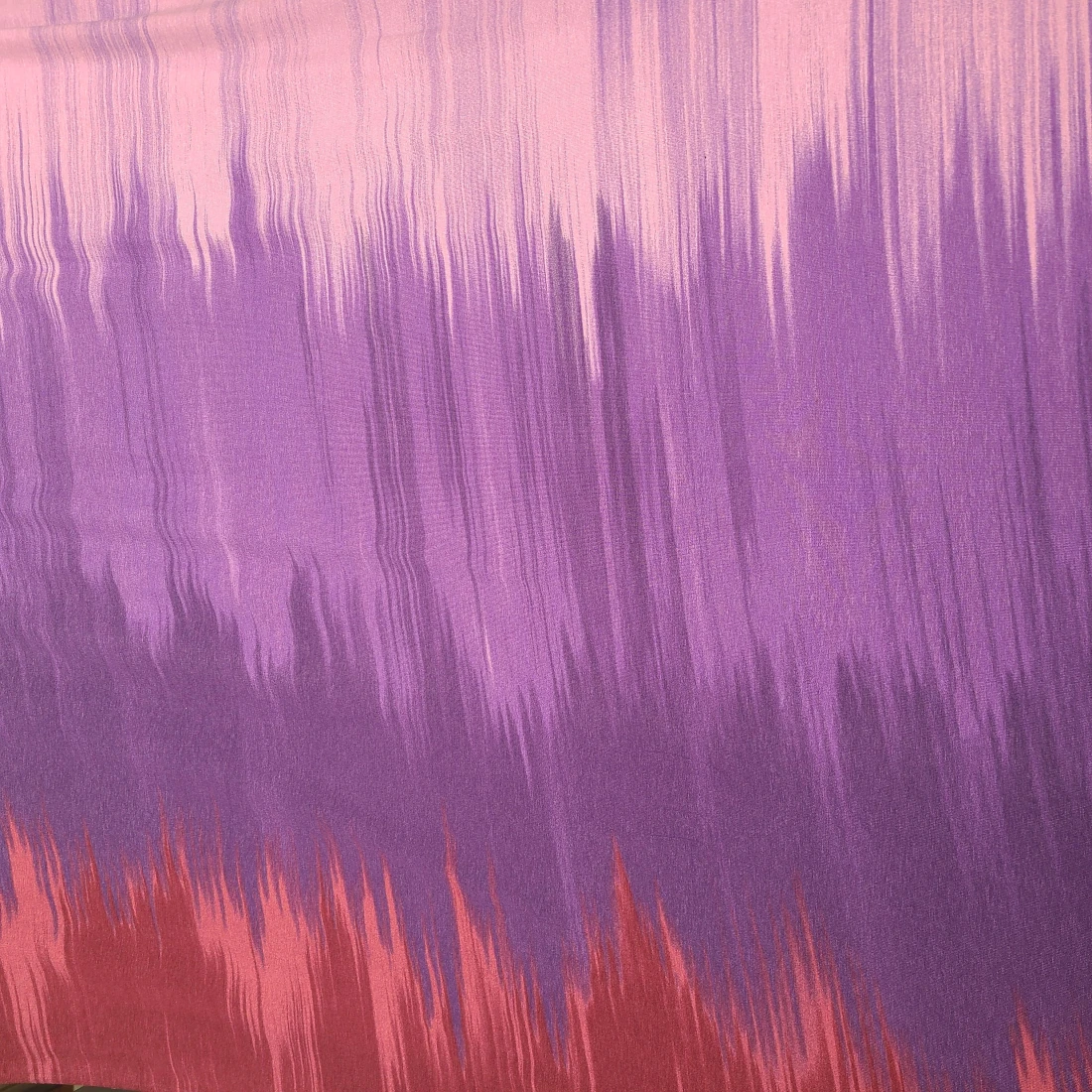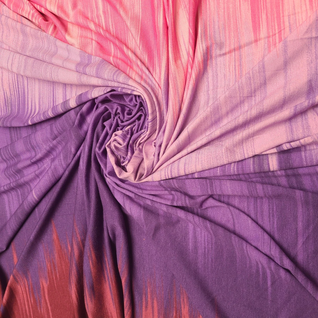 Wir haben uns in dieses bedruckte Jersey-Viskose-Gewebe in lila Farbverlauf verliebt. Seine Zusammensetzung aus 95% Viskose und 5% Elasthan macht es weich und angenehm zu tragen. Das mittlere Gewicht macht es zum perfekten Stoff für die Herstellung von Kleidern, T-Shirts, Röcken, Hosen und Oberteilen, die perfekt auf Ihre Silhouette fallen werden. Mit diesem bedruckten Jersey können Sie einzigartige und trendige Kleidungsstücke für jeden Anlass kreieren.