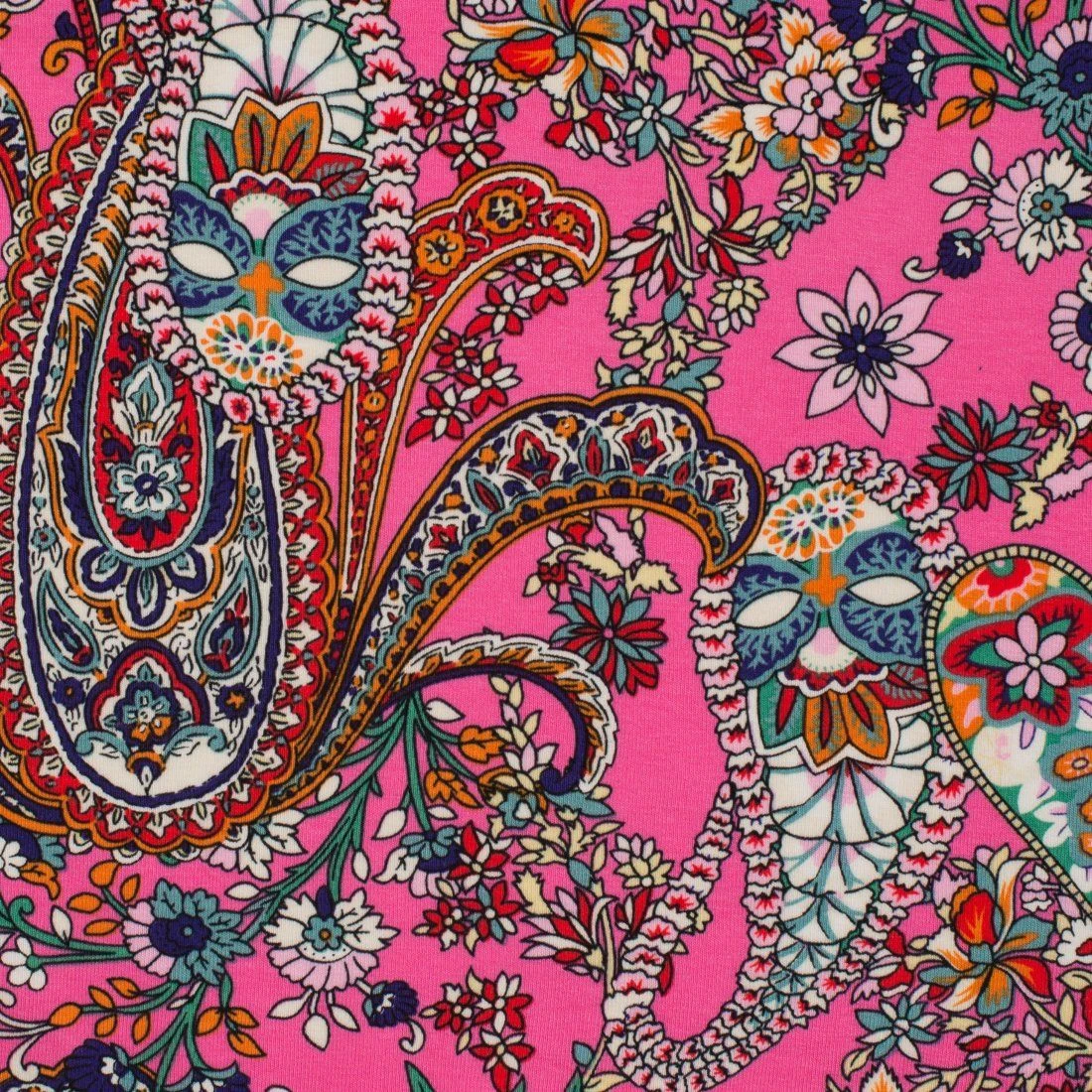 Warten Sie nicht länger und fügen Sie diesen bedruckten Paisley-Blumenjersey aus Viskosejersey Ihrer Stoffkollektion hinzu. Bestellen Sie jetzt!