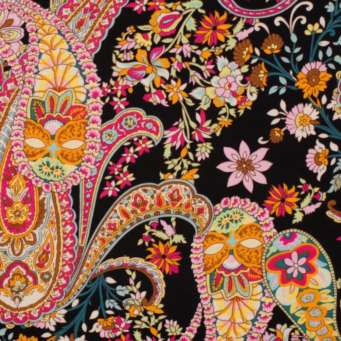 Das Paisley-Blumenmuster in Schwarz ist absolut wunderschön, und wir können uns bereits so viele kreative Projekte vorstellen, die Sie mit diesem Stoff umsetzen können. Lassen Sie Ihrer Fantasie freien Lauf und kreieren Sie einzigartige und stilvolle Stücke mit diesem bedruckten Paisley-Blumenjersey aus Viskose!